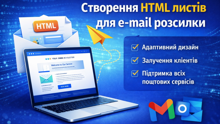 - Верстка HTML з використанням сучасних стандартів email-маркетингу
