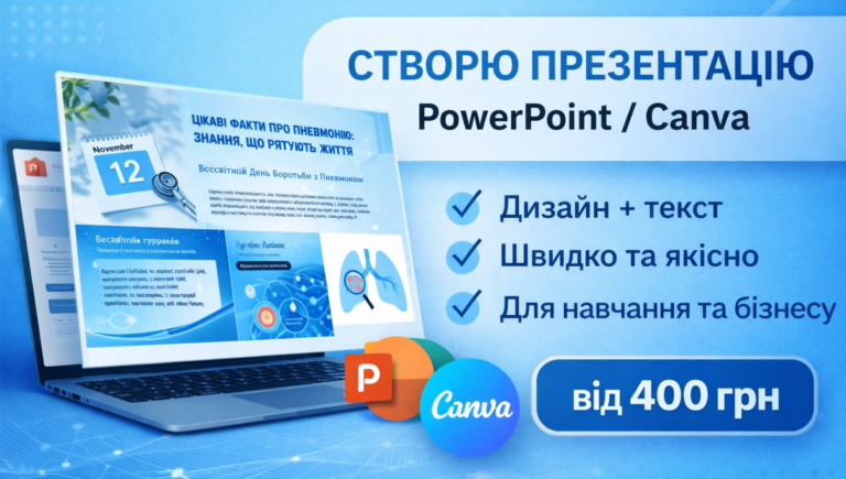 Створю сучасну та зрозумілу презентацію для навчання, бізнесу або виступу.