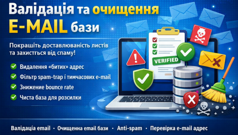 Після перевірки ви отримуєте чисту, готову до розсилки базу, що зменшує bounce rate, покращує репутацію домену та підвищує ефективність e-mail маркетингу.